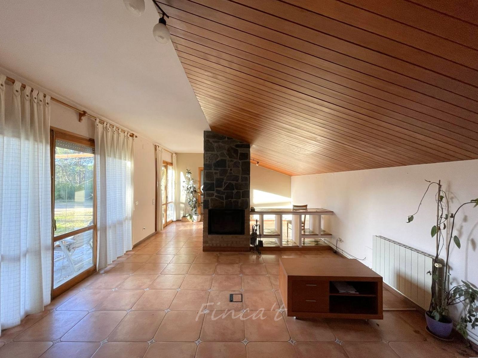 L’habitatge, de disseny en forma de “L”, és molt lluminós i assolellat tot el dia. Disposa de 4 habitacions (2 individuals, 1 doble i 1 suite amb vestidor i bany), 2 banys complets, cuina reformada i ampli saló-menjador amb llar de foc i sortida al jardí.