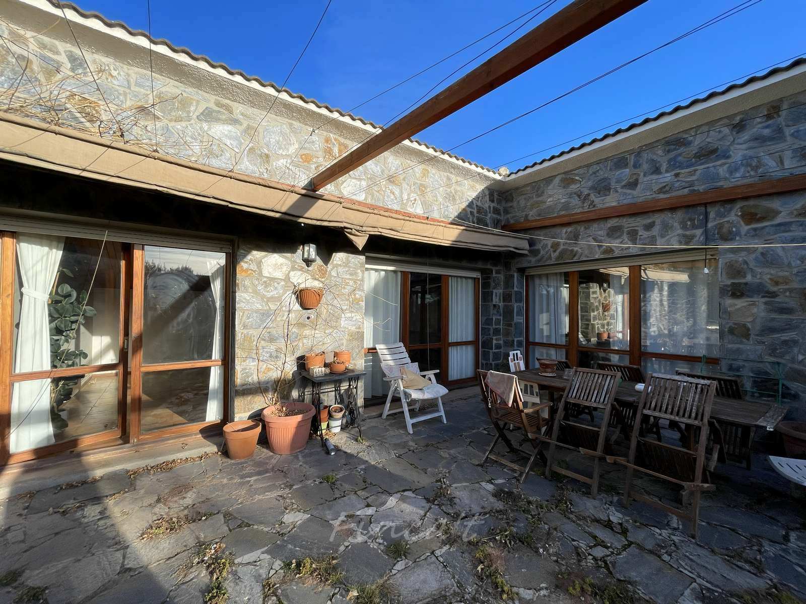 Zona exterior preparada per a barbacoa i tendall extensible. Compta amb calefacció per radiadors amb caldera de gasoil, terres de gres porcellànic i finestres de fusta amb doble vidre.